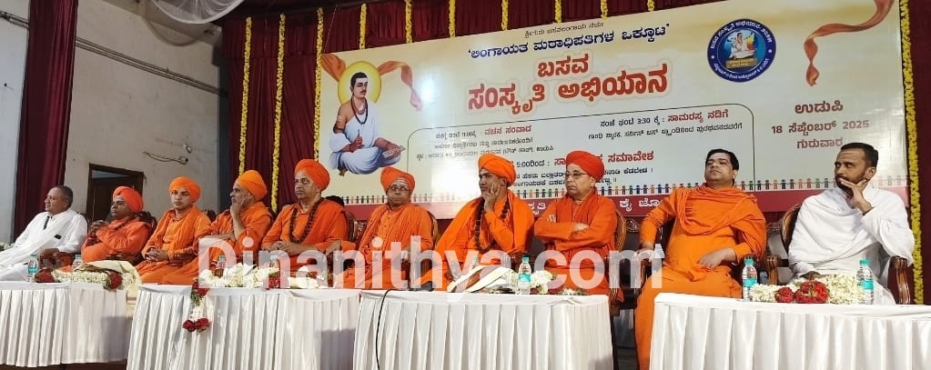 ಲಿಂಗಾಯತ ಮಠಾಧಿಪತಿಗಳ ಒಕ್ಕೂಟದ ವತಿಯಿಂದ ಉಡುಪಿ ಪುರಭವನ (ಟೌನ್ಹಾಲ್)ದಲ್ಲಿ ಗುರುವಾರ ಬಸವ ಸಂಸ್ಕೃತಿ ಅಭಿಯಾನ ಉಡುಪಿ ಅಂಗವಾಗಿ ಆಯೋಜಿಸಿದ್ದ ಕಾಲೇಜು ವಿದ್ಯಾರ್ಥಿಗಳು ಮತ್ತು ಸಾರ್ವಜನಿಕರೊಂದಿಗೆ ನಡೆದ ವಚನ ಸಂವಾದ ಕಾರ್ಯಕ್ರಮದಲ್ಲಿ ಭಾಗವಹಿಸಿ ಮಾತನಾಡಿದರು.