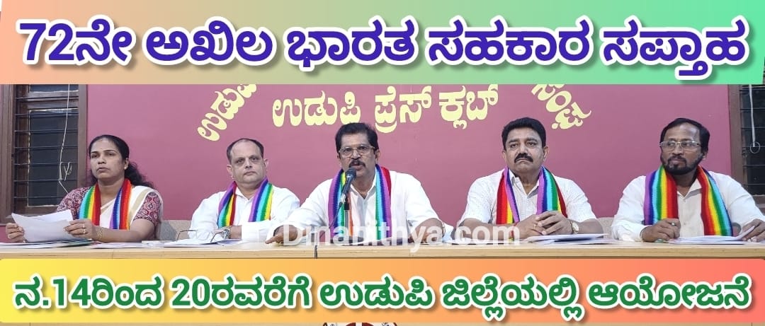 ಉಡುಪಿ: ಕರ್ನಾಟಕ ರಾಜ್ಯ ಸಹಕಾರ ಮಹಾಮಂಡಳ ನಿ. ಬೆಂಗಳೂರು, ಉಡುಪಿ ಜಿಲ್ಲಾ ಸಹಕಾರ ಯೂನಿಯನ್, ಸಹಕಾರ ಇಲಾಖೆ ಹಾಗೂ ಉಡುಪಿ ಜಿಲ್ಲೆಯ ವಿವಿಧ ಸಹಕಾರ ಸಂಸ್ಥೆಗಳ ಸಹಯೋಗದೊಂದಿಗೆ ಇದೇ ನ. 14ರಿಂದ 20ರವರೆಗೆ ಉಡುಪಿ ಜಿಲ್ಲೆಯಾದ್ಯಂತ 72ನೇ ಅಖಿಲ ಭಾರತ ಸಹಕಾರ ಸಪ್ತಾಹ ಕಾರ್ಯಕ್ರಮ ನಡೆಯಲಿದೆ ಎಂದು ಉಡುಪಿ ಜಿಲ್ಲಾ ಸಹಕಾರ ಯೂನಿಯನ್ ಅಧ್ಯಕ್ಷರಾದ ಜಯಕರ ಶೆಟ್ಟಿ ಇಂದ್ರಾಳಿ ಹೇಳಿದರು.